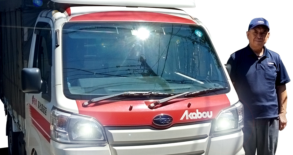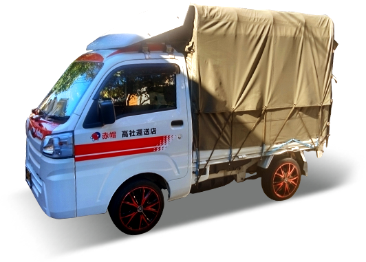 家具・家電品等を梱包し赤帽車に積み込みます。お引越し先への移動時は 1名様同乗可。